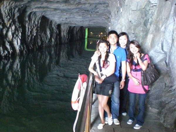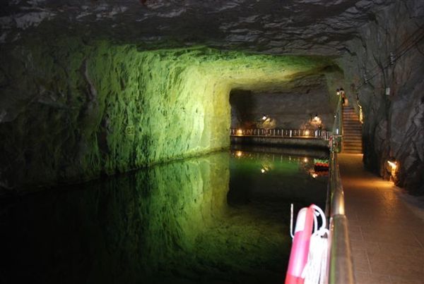 看到了嗎?坑道頂部倒映在水面上,視覺上會有坑道很深;好像沒有水的錯覺!