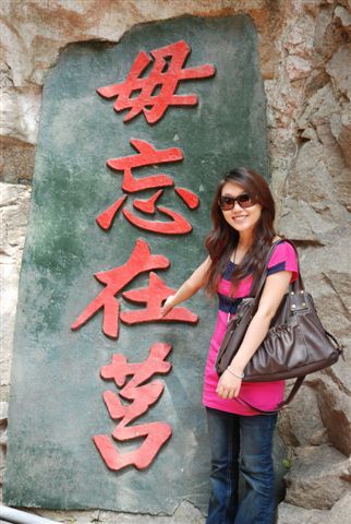 進入坑道前,發現坑道口有個"毋忘在莒",雖然這個不是正港太武山的毋忘在莒勒石,可是.....一定要拍一下的呀~這可代表著我有來過金門耶!!
