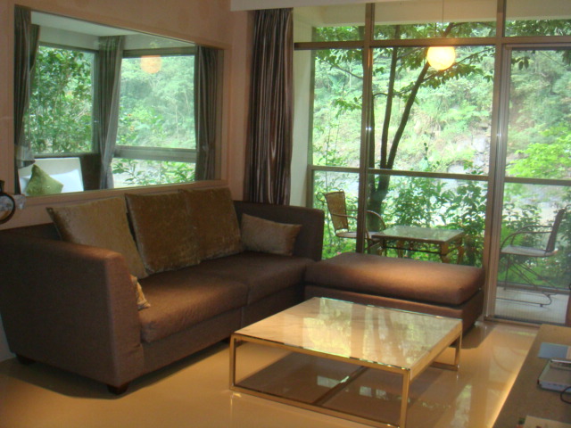 房間和客廳都是落地窗,可以從房內看到旁邊北勢溪清澈無比的溪流!!整個就是有水都威尼斯的FU,