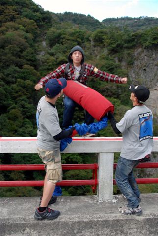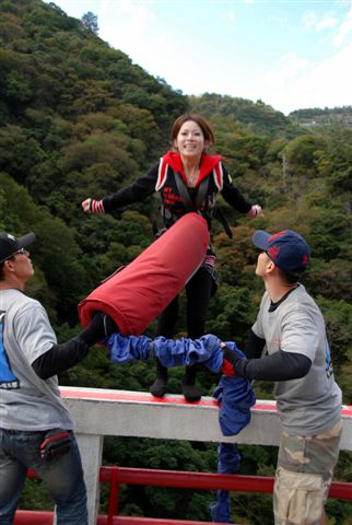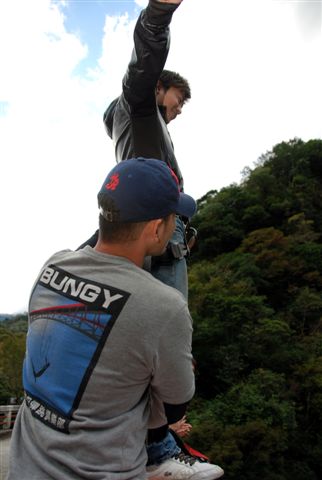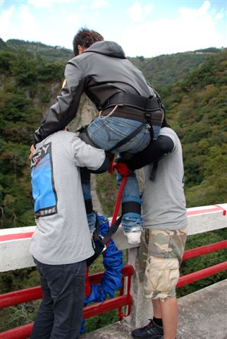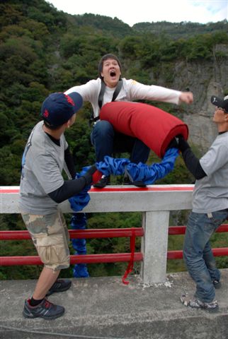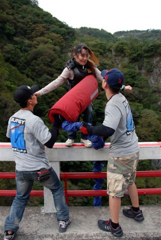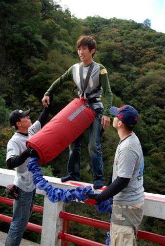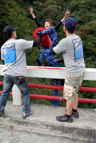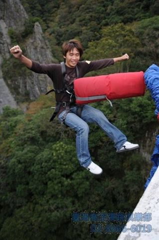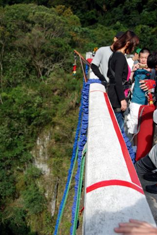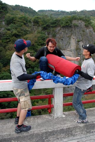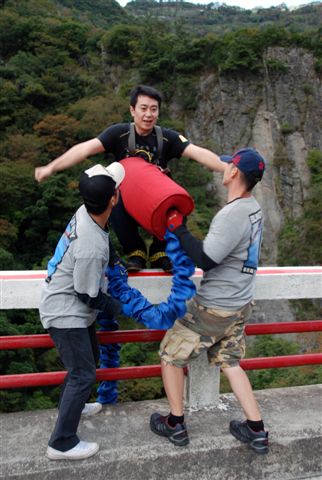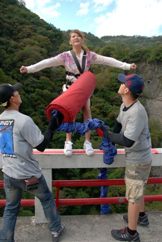 於桃園復興鄉大漢橋72M 挑戰高空彈跳 成功。