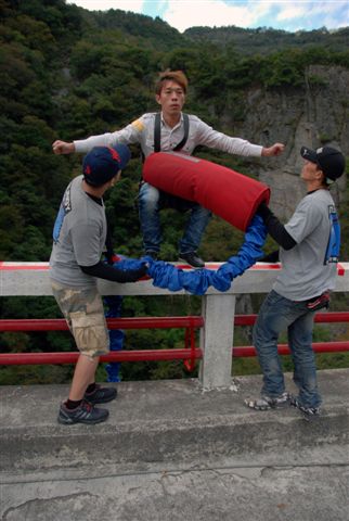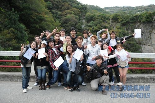 記得第一次跳的時候,大家都面向河谷,非常阿殺力的跳下去....