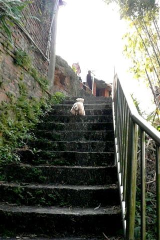 我姊把小白放在我們小時候玩捉迷藏的防空洞上方