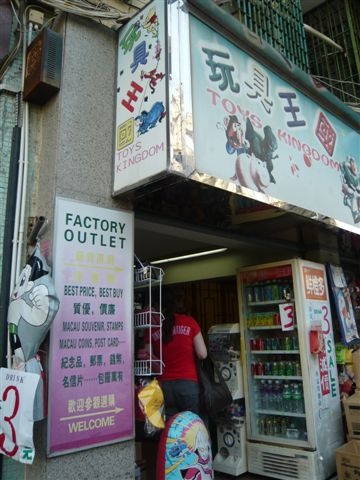 第二天,我們在大三巴牌坊樓梯旁的小巷中發現了一家賣紀念品和明信片的小店家,