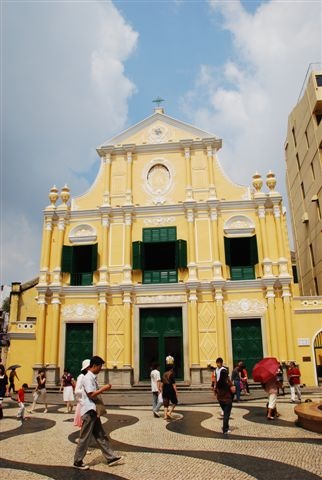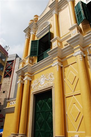 由議事亭前地走到底就可以看到這棟金黃色的玫瑰堂囉