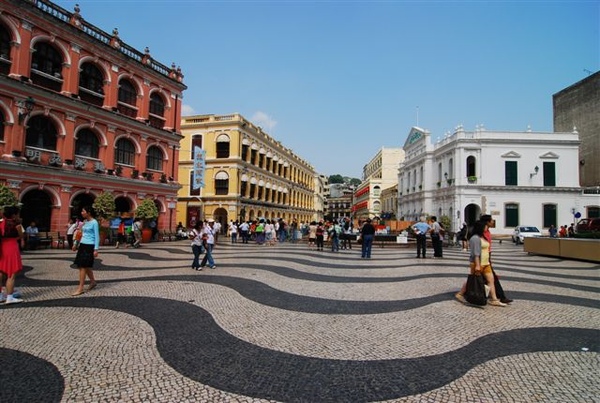 不過,那顏色鮮豔的文物建築搭配上後來鋪的黑白色波浪地磚,